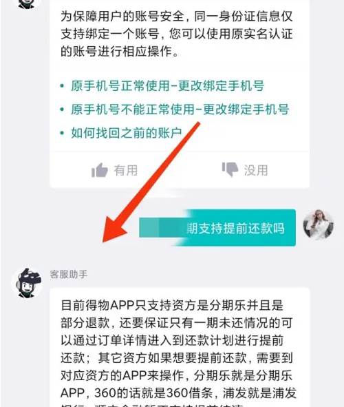 点击支持提前还款吗,如下图,看到得物APP客服平台的回复就知道只能对应的平台进行还款就可以了