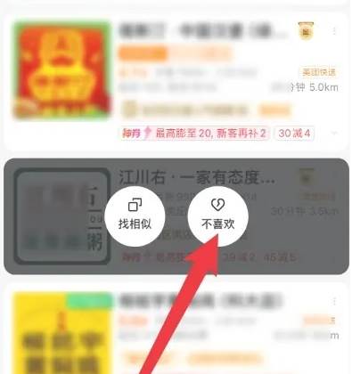 最后,如下,点击【不喜欢】这样即可将不好吃的店铺拉黑了