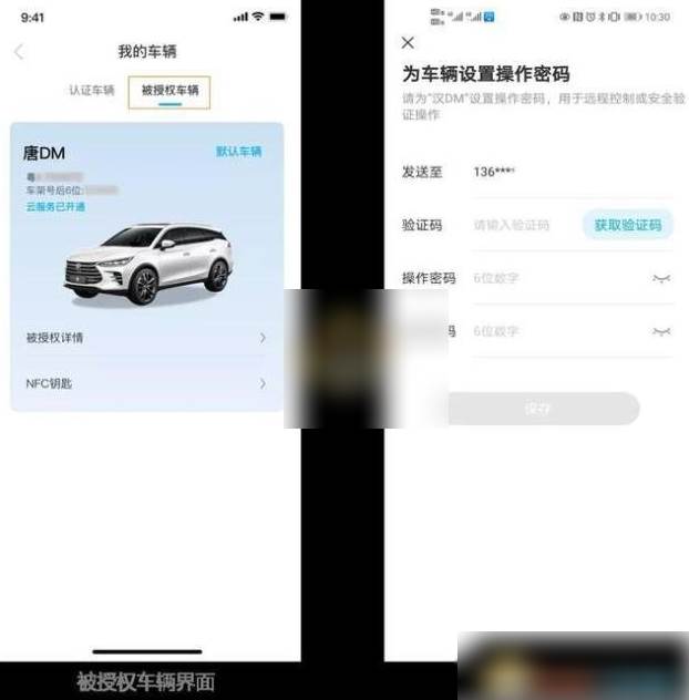 3、被授权车主在比亚迪汽车App点击【我的】-【我的车】界面,就能看到被授权的车辆,已被授权云钥匙的账号,可在【爱车】界面点击任一功能设置操作密码,随后便可以使用车辆啦!