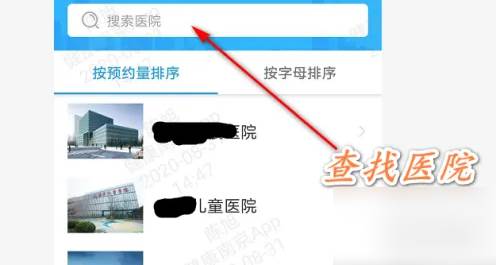 5.搜索想要预约的医院并点击进入。