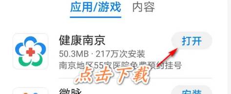 1.在手机的应用市场中下载“健康南京app”。