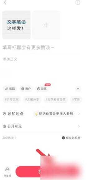 最后,进入内容编辑页面,编辑正文内容,添加相应的信息,点击发布笔记按钮,就可以发布笔记了