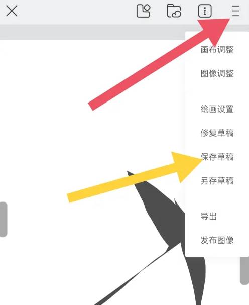 点击右上角的三横线标记,再点击“保存草稿”即可保存完成的画作。