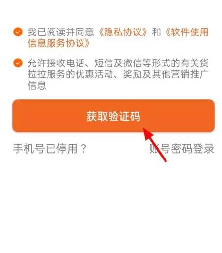 在货拉拉司机版页面,输入手机号,点击获取验证码。