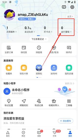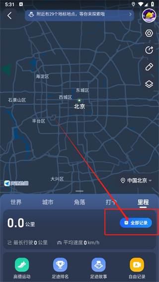 3、在出行里程界面,点击“全部记录”可以查看到所有的导航记录。