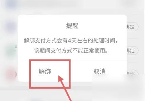 在弹出窗口里选择“解除绑定”,查看提醒,点击“解绑”,4天后就解绑成功了。