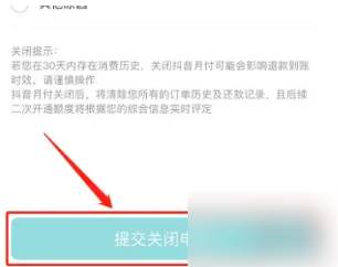 7、最后提交申请并点击仍要关闭即可成功关闭抖音月付。