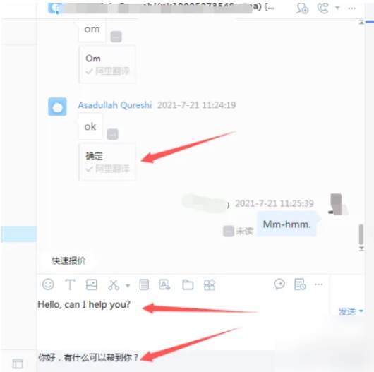设置好后,打开聊天对话框,输入文字,聊天界面会自动翻译为你需要的语言。如图所示。