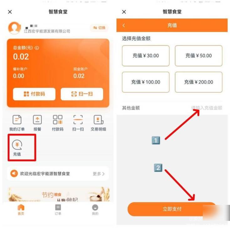 4.充值。点击“充值”输入要充值的金额,使用龙支付进行付款。