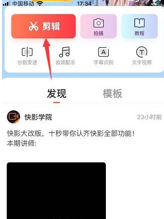 1、首先我们需要进入到快影软件中,在剪辑页面点击剪辑,然后从相册上传视频;