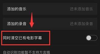 4、点击那个功能后,在弹出的功能选项中点击【同时清空已有电影字幕】;