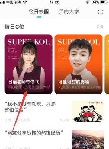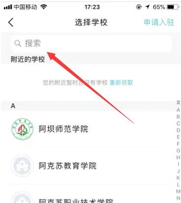 登录之后,首先需要选择使用的校园,直接搜索即可,如果身在学校内,也可以直接定位,如图所示。
