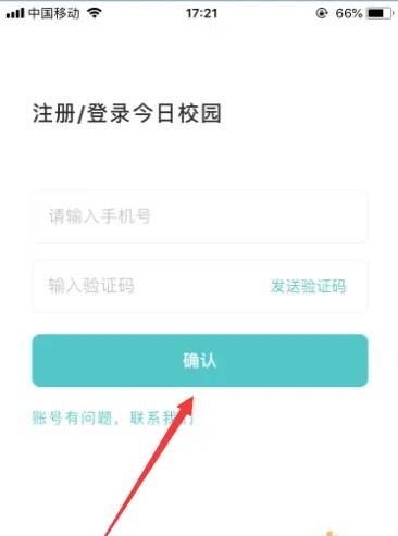 进入今日校园之后,首先需要进行注册,使用手机号注册,会接收到一个手机验证码,正确填写验证码之后,即可注册登录成功,如图所示。