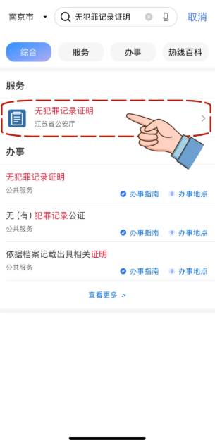 打开“苏服办”APP、支付宝小程序,在首页搜索“无犯罪记录证明”,进入服务。