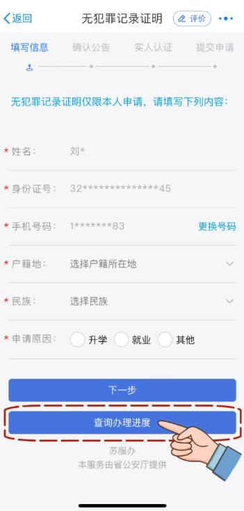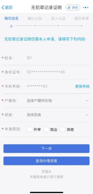 按要求填写信息,进入下一步,阅读无犯罪记录证明申报须知。