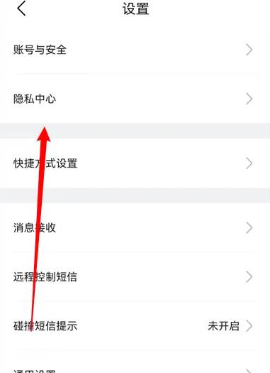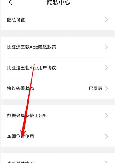 打开比亚迪王朝app,在设置页面点击隐私中心。