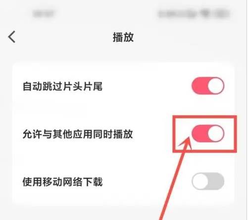 进入播放设置,开启“允许与其他应用同时播放”开关,就行了设置不中断播放。(如下图所示)