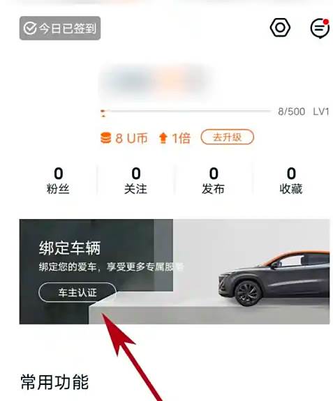 进入到“我的”页面后,我们点击如图位置的“车主认证”