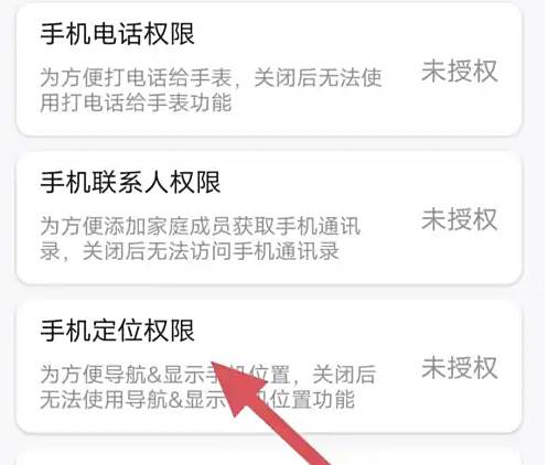 勾选【手机定位权限】点击进入"