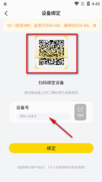 2.进入软件后,直接扫描车上的二维码进行绑定,或是直接输入设备号