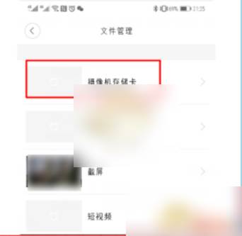 4、进入摄像头文件页面,选择摄像头存储卡的选项进入。