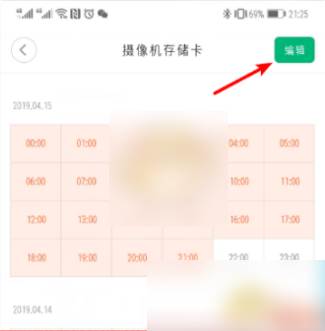 5、进入后,可以看到摄像头录制监控的时间段,点击右上方的编辑。