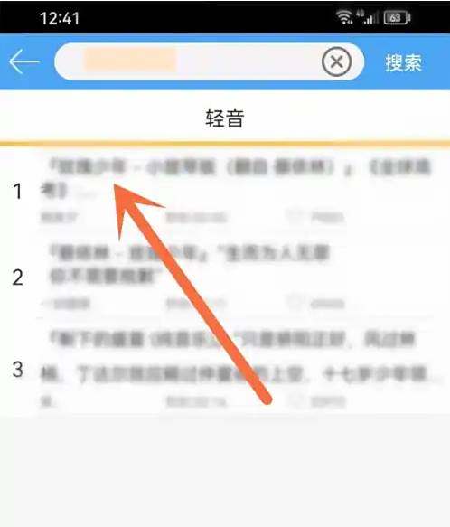 在搜索结果中找到音乐,点击进入。