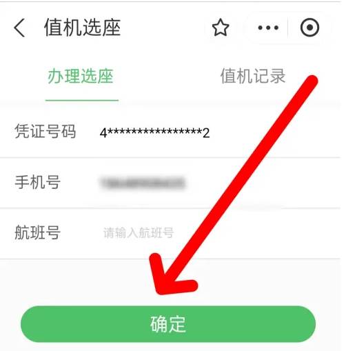 最后,我们输入航班号等相关信息,点击确定,进行值机即可。