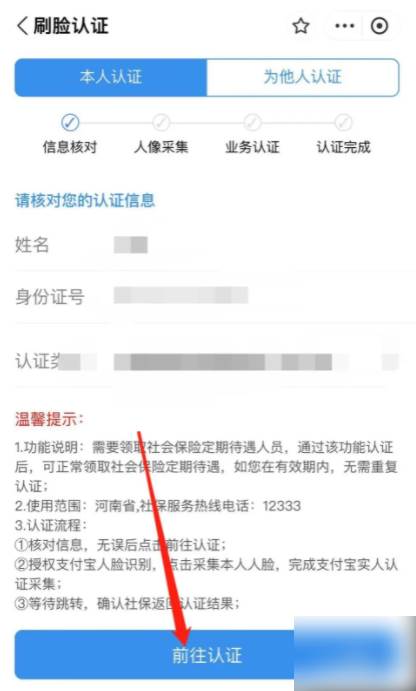 在刷脸认证界面中,点击“前往认证就可以了