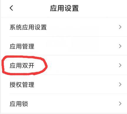 点击上面的应用设置之后,我们会进到下面的页面,我们点击应用双开按钮,如下图的地方。