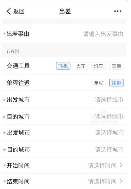 5.在申请界面可以选择申请出差。