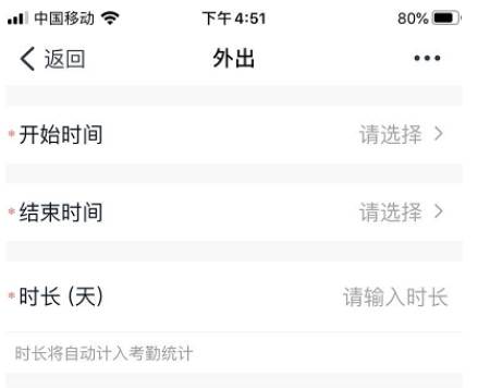 6.也可以选择申请外出,在里面输入你的原因和时间,向管理员提交申请,通过就可以了。