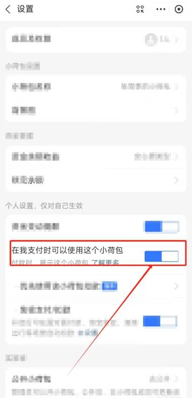 第四步:在出现的页面中点击关闭【在我支付时可以使用这个小荷包】后面的按钮