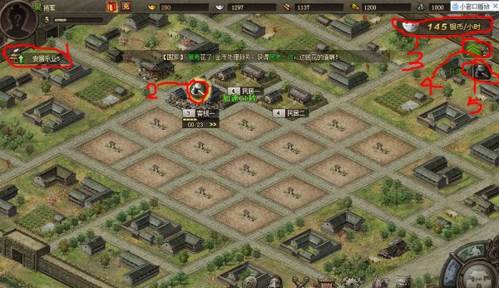 而四大资源的获取通过资源区建筑(民居、木场、农田、矿场)产出,当然也可通过其它形式获取,比如政务事件、祭祀、集市交易,特定活动等!在游戏中,资源系统的产生与任务系统紧密相连,在性感NPC的指引下,我们一步步迈出征战的脚步,如图:
