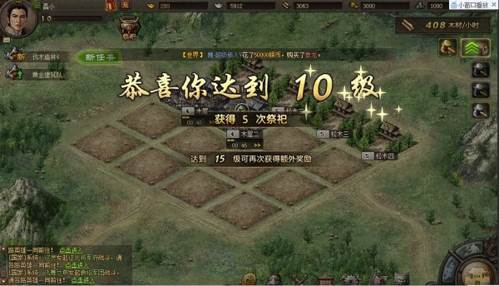 随着任务NPC的一步步的示,我们很快达到时10级,并有了自己的木场,同时也获得了5次免费祭祀哦!同时祭祀系统也将开启!