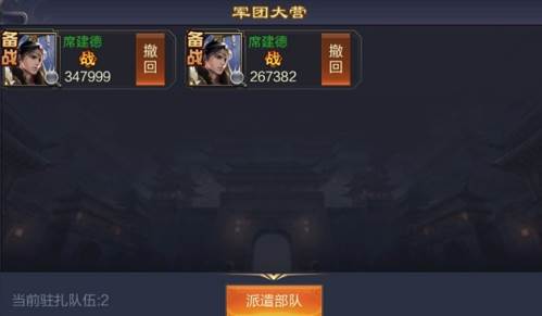⑹军团成员,可以在下线前把部队全部派遣进入军团大营,以便于:团长、副团长、都尉,攻城拔寨时调遣使用,也是成员离线期间为军团作贡献。
