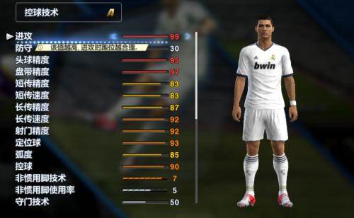 技术:射门还说得过去,传球不错,技能多而实用,用的好可以很秀。