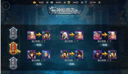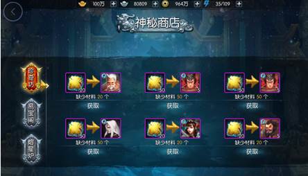 神秘商店是玩家获取稀有武将的方式。神秘商店主要分为珍奇坊、易宝阁和熔星炉。珍奇坊是用神秘石兑换稀有武将信物,易宝阁是用武将信物兑换武将信物,熔星炉是将武将信物兑换成神秘石。武将信物可通过关卡和寻访获得,神秘石只能通过武将信物兑换才可获得。