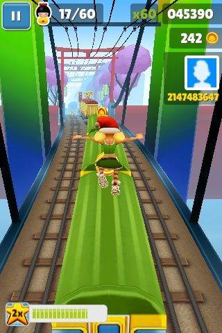 地铁跑酷免费版开启全新地铁场景,男孩不再只是一个人在铁轨跑酷,画面看起来很舒服,奔跑效果也很给力。可以来回穿插三个铁轨也可以再车厢上面奔跑,活动场景比较多!中途会遇到迎面开来的火车有很强的冲击力,另外穿插了道具系统只有穿鞋子才能从地面直接跳跃到车厢(经过多次试验)整体游戏可玩性非常强,已经超越了很多的跑酷游戏。竭尽全力冲刺!躲避迎面而来的火车!