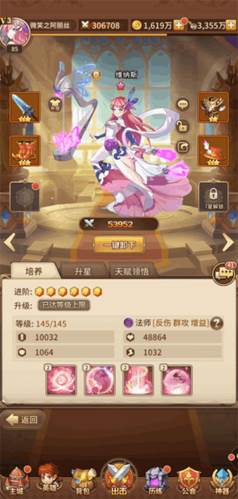 点评:这个英雄他的前期是非常强的,差不多第二轮就可以结束战斗,到后期的单体伤害也是很高的,并且她有两个主动技能和两个被动技能。建议前期优先培养,人物搭配(前期清一色橙色武器装备,后期3到4星红色武器装备)阵容建议放在后方输出。