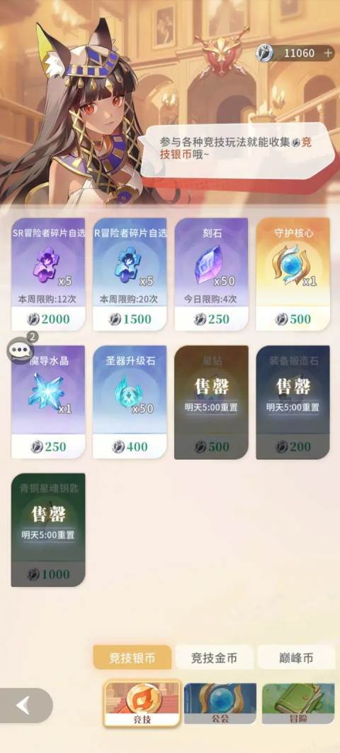 4、公会商店:优先圣杯和守护升星自选,我这里是当时为了抢排名所以换了其他东西,不要学我。守护校准仪不用急,守护升阶是有等级限制的,等级到了不够不妨再行兑换。