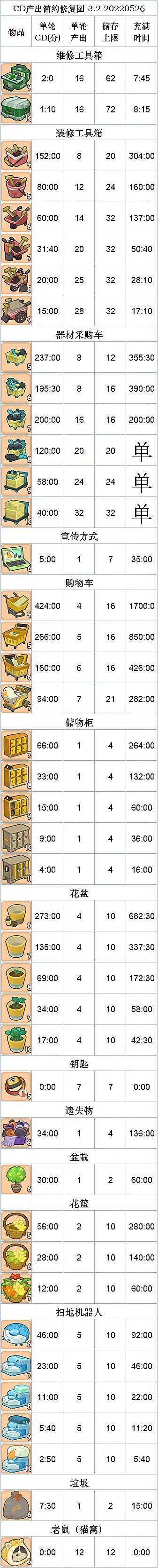 底层为合成时产出值(电视和书不需要加速)详细计算请看第一章和第二章攻略