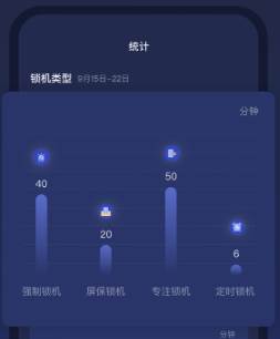 【专属报告】在每次用户使用后本产品会为用户定制专属报告,自动生成图表,人性化分析本次锁机情况,帮助用户养成良好的生活习惯。