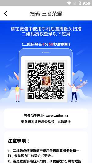 五条助手上号器已支持苹果和安卓系统扫码登录。