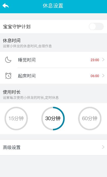 【父母中心】—防沉迷设置,保护眼睛:家长可以在微信上限制使用时间,设定作息时间,孩子与小伴龙一起养成早睡早起的好习惯;设置每次使用时长,定时休息,防止长时间使用用眼过度。