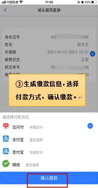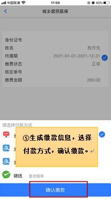 5、生成缴款信息,再次确认无误后,选择相应的付款方式,点击确认缴费。