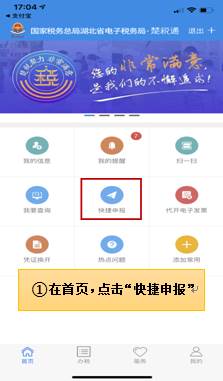 1、打开楚税通app,在首页,点击“快捷申报”