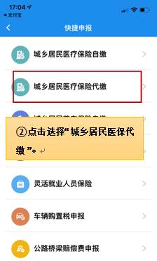 2、进入快捷申报页面后,选择第二个“城乡居民医疗保险代缴”
