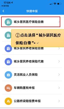 2、进入快捷申报页面后,点击第一个“城乡居民医疗保险自缴”;