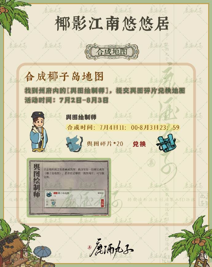 收集[舆图碎片]*20,合成[椰子岛地图]